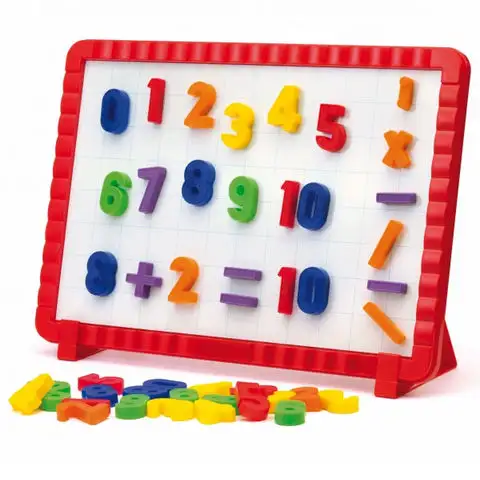 Tuto skvělou magnetickou tabuli si každé malé dítě zamiluje, protože je plná veselých a barevných prvků, které nejenže vykouzlí úsměv na jejich tváři, ale mohou být také skvělými pomocníky ve vzdělávání. Během hraní se mohou seznámit s paletou barev a také se mohou ponořit do vzrušujícího světa čísel. Na bílou tabuli s červeným rámem lze snadno umístit čísla a matematické symboly, díky kterým lze osvojit i jednodušší matematické operace.