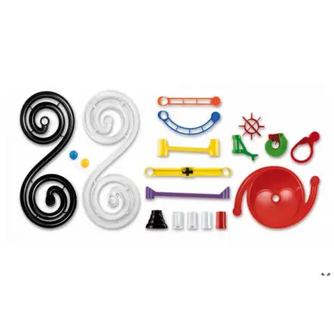 Vytvoř si vlastní vzrušující kuličkovou dráhu! Postav konstrukci viditelnou na krabici nebo se odvaž a experimentuj a vytvoř vlastní design! Zatáčky, rovné a křivé koleje, různé mosty a sloupy, trychtýře, to vše je k dispozici pro tvou tvorbu. Díky nim můžeš vytvořit nekonečné variace odvážných drah pro malé kuličky. Veselé barvy dílů a radost ze stavění zaručeně vykouzlí úsměv na tváři a slibují hodiny bezstarostné zábavy.