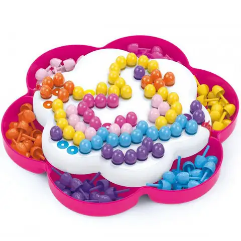 S tímto hračkou ve tvaru květiny můžete vytvořit ty nejzvláštnější obrázky, protože máte k dispozici celkem sto padesát kousků v šesti různých barvách. Na začátku hry se můžete spolehnout na šablony, z nichž v balení najdete tři různé, a jakmile s nimi budete snadno zvládat, můžete pustit uzdu své fantazii a vytvořit jakýkoliv obrázek. Skvělá zábava, která rozvíjí kreativitu dětí, zlepšuje vnímání barev a zvyšuje jejich koncentraci.