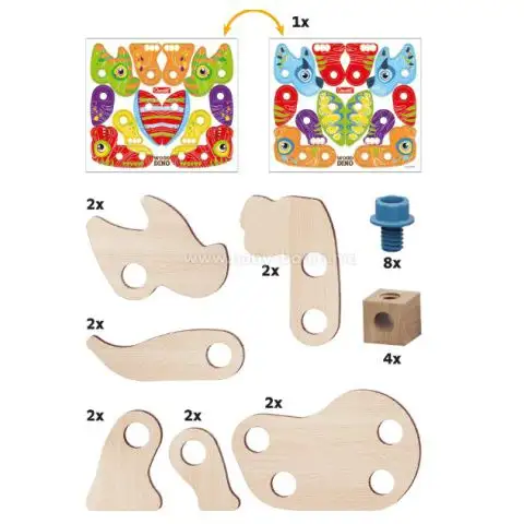Z tohoto fantastického, 24dílného stavebního setu lze sestavit několik vzrušujících druhů dinosaurů, který je navíc vyráběn s ohledem na životní prostředí pomocí ekologických technologií. Sada Play Bio s dinosaury obsahuje barevné díly, které umožňují vytvořit několik oblíbených dinosaurů. Montáž je jednoduchá, protože děti musí použít pouze stavební díly a šrouby. Hračka také skvěle rozvíjí manuální zručnost. Rodina produktů Quercetti Play Bio byla vytvořena v duchu ekologického uvědomění a udržitelné budoucnosti, takže je vyrobena ze 100% recyklovatelného bioplastu, z něhož 40% tvoří dřevěná vlákna. Díky zvláštnímu složení materiálu Play Bio jsou barvy hračky měkčí a pastelovější, zatímco plast si zachovává svou strukturální pevnost a odolnost, což z něj činí ideální dětskou hračku.