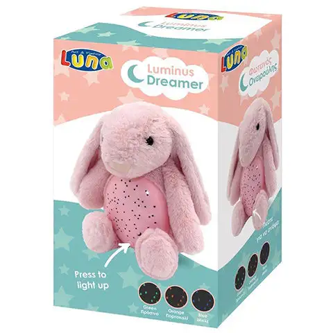 Získejte pro své dítě projektorového růžového plyšového králíčka, který se jistě stane jedním z jeho oblíbených hraček. Jeho měkký kožíšek může dítě kdykoli pohladit a projektor na jeho bříšku může na stěnu promítat úžasné vzory hvězd ve tmě, což usnadní usínání vašeho dítěte večer a je také ideální jako noční světlo. Králíček je vhodný pro děti od jednoho roku a může být s ním i během cestování jako nově oblíbená hračka.