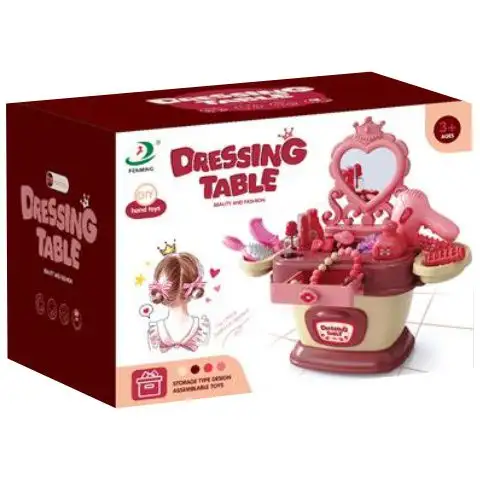 Tato speciální otevíratelná sada kosmetického stolu určitě získá sympatie dětí. Na dně krabice najdete mnoho šperků, kterými můžete snadno a rychle vylepšit svůj vzhled. Víko krabice se prakticky otevírá a v okamžiku se mění na kosmetický stůl, na kterém je dokonce i zrcadlo ve tvaru srdce. Na vrchu stolu jsou různé úložné prostory a dokonce i šuplík. Sada obsahuje celkem 58 kusů.