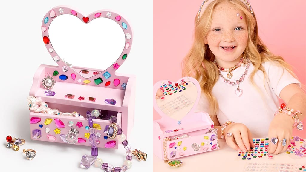 Zazář opravdu během svých GRWM (Get Ready With Me) chvilek s tímto mini toaletním stolkem! Tento výjimečný kousek je perfektní volbou, pokud ráda líčíš, upravuješ si vlasy nebo si jen chceš dopřát chvilku pro sebe. Díky kompaktní velikosti se snadno vejde do tvého pokoje, přesto na něj umístíš všechny potřebné doplňky. Ať už jde o rychlou ranní přípravu nebo odpoledne s kamarádkami, tento mini toaletní stolek nabízí stylové a praktické řešení pro každou příležitost. Objev svět lesku a kreativity a dopřej si doma opravdový zážitek hvězdy!Přidej trochu třpytu a kouzla do svých všedních dnů s Mini Vanity Gemify kreativní sadou! Tento růžový toaletní stolek se zrcadlem ve tvaru srdce si děti mohou ozdobit barevnými kamínky a třpytivými samolepkami, aby byl opravdu jedinečný. Součástí sady je také polička a praktická zásuvka, které jsou ideálním místem pro dětské náhrdelníky, náramky, sponky do vlasů i kartáč na vlasy Style and Shine Gemify zdobený drahokamy. Tato sada nejen rozvíjí kreativitu, ale také pomáhá s organizací a dekorací pokoje, takže se každá malá holčička může cítit jako skutečná princezna!