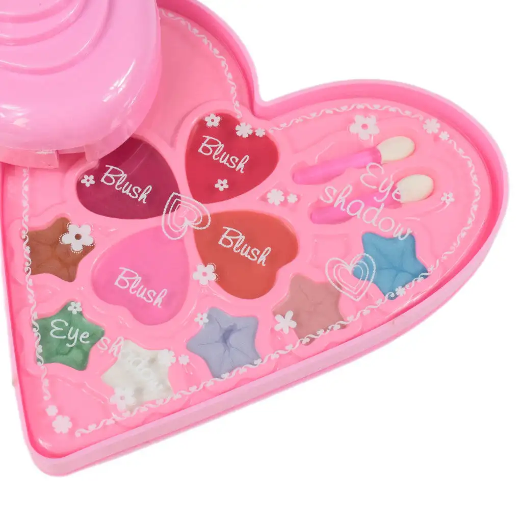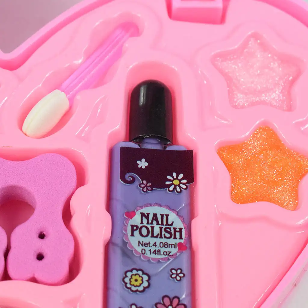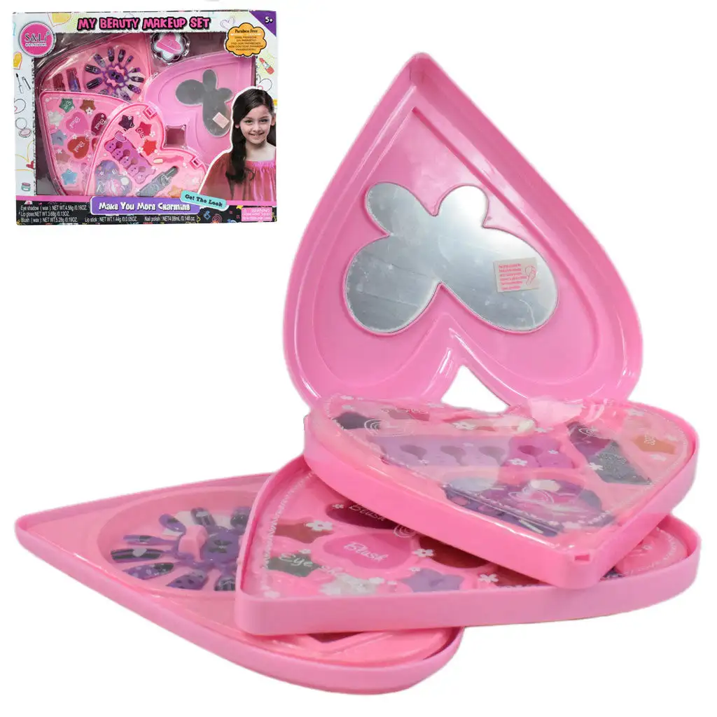 S&L Cosmetic přináší speciální a velmi dívčí paletu make-upu pro nejmenší fanoušky make-upu, která zaručí úspěch u obdarovaného. Sada přichází v velkém srdcovém obalu, jehož víko má na vnitřní straně zrcátko ve tvaru motýla. Díky tříúrovňovému designu najde vaše dítě v něm spoustu make-upu. Na horní úrovni najdete 5 různých barev třpytivého a vonného lesku na rty s přiloženým aplikátorem, kterým vaše dítě snadno nanese make-up. Kromě toho zde najdete lak na nehty, houbičku na oddělení prstů a pilník na nehty. Na další úrovni najdete 4 různé barvy tvářenky a 6 barevných očních stínů s 2 přiloženými štětci. Na poslední úrovni najdete lepitelné nehtové tipy s krásným vzorem, které udělají vaše dítě velmi dívčí, a navíc zde najdete 2 různé barvy rtěnky. S jejich pomocí si vaše dítě může vyzkoušet líčení a nemusíte se bát, že vaše dítě ukradne vaše make-upy, protože má svou vlastní sadu. Pořiďte si tuto skvělou sadu, která poskytne vašemu dítěti nezapomenutelné zážitky.