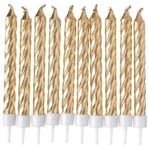 Sada 10 kusů zlatých kroucených svíček.Sada 10 kusů zlatých kroucených svíček.