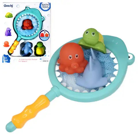 Nyní si můžete pro své dítě pořídit skvělou vodní hračku, která bude během koupání nebo na pláži skvělým společníkem. Hlavní částí hračky je síť, jejíž rám tvoří ústa velkého žraloka, což upoutá pozornost a zpříjemní rybaření. Díky svému jedinečnému designu si hračka získá oblibu dětí. K rybářské síti patří 3 mořská zvířata, chobotnice, želva a kladivoun. Tyto malé zvířátka lze vylovit ze sítě, což výrazně rozvíjí dětskou jemnou motoriku, zatímco se skvěle baví. Zvířátka jsou navržena tak, že dokážou stříkat vodní proudy, což zážitek ještě více oživuje, navíc při teplotě vody 38 stupňů nebo vyšší se mění jejich barva. Rybářská síť a zvířátka jsou skvělou volbou i pro hru během koupání, takže děti získají zážitek i v bazénu. Rybářská síť a zvířátka jsou vyrobeny z kvalitního materiálu, takže je zaručena jejich trvanlivost. Zážitek bude podobný rybaření, jen nyní budou naším úlovkem mořská zvířata, která vylovíme žraločími ústy. S rybářskou sítí a zvířátky se děti určitě skvěle pobaví!
