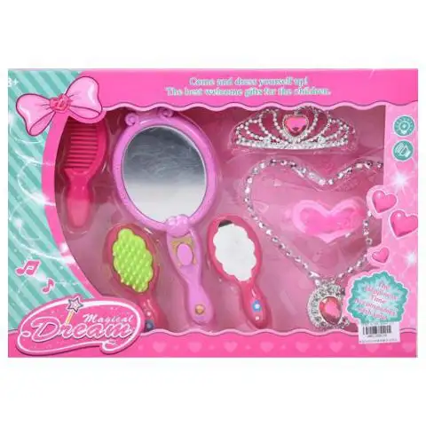 Díky této fantastické sadě se malé dívky mohou proměnit ve skutečné princezny, protože najdou všechny potřebné doplňky, aby s nimi ozdobily plesové šaty. Ať už jde o karneval nebo jen o vzrušující všední den, tato sada pomůže zlepšit náladu. V balení najdete kromě tiáry a náhrdelníku také zrcátko, kartáč na vlasy a hřeben. Sada může být použita dětmi samotnými, nebo mohou podle svého uvážení ozdobit i své panenky. Zrcátko hraje hudbu na stisknutí tlačítka.