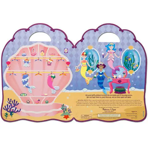Jistě znáš příběh malé mořské panny, takže kouzelný podvodní svět mořských panen není pro tebe novinkou, ale s touto sadou si můžeš sám vytvářet podvodní dobrodružství malých mořských panen, díky nejrůznějším samolepkám. Sady puffy samolepek od Melissa & Doug obsahují pevnou oboustrannou desku, která se hodí k sadě, a desítky puffy samolepek. Samolepky lze snadno přilepit na desku i na sebe, aby děti mohly vytvořit scénu. Pokud by chtěly na scéně něco změnit, samolepky lze použít opakovaně a neustále měnit obrázek.