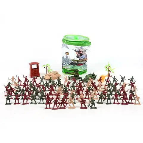 Tyto hračkoví vojáci mohou být skvělou volbou pro vaše dítě, protože si s nimi bude moci hodně hrát. Vojáci mají detailní provedení a jsou ve třech různých barvách, což umožňuje vytvořit z nich různé týmy, které mezi sebou mohou bojovat. Sada přichází v plastovém uzavíratelném obalu a jako doplňky obsahuje věž a tank, stejně jako palmy. Hračkoví vojáci mohou poskytnout skvělou zábavu vašemu dítěti, takže si je pro něj pořiďte a hra může začít.