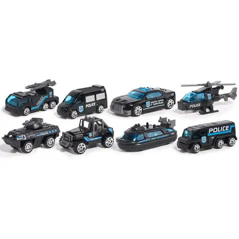 S tímto setem X-Police mohou děti během okamžiku založit policejní stanici ve svém hračkovém městě, protože v něm najdou všechny potřebné dopravní prostředky. S těmito vozidly není překážkou udržování pořádku na zemi, na vodě ani ve vzduchu. V tomto balení se nachází osm skvělých hasičských vozidel. Mezi klasicky červenými hasičskými vozidly mohou děti najít helikoptéru, vznášedlo, obrněný transportér a otevřený terénní vůz. Díky detailnímu zpracování a malbě jsou tyto modely aut stejně skvělé jako skutečné.