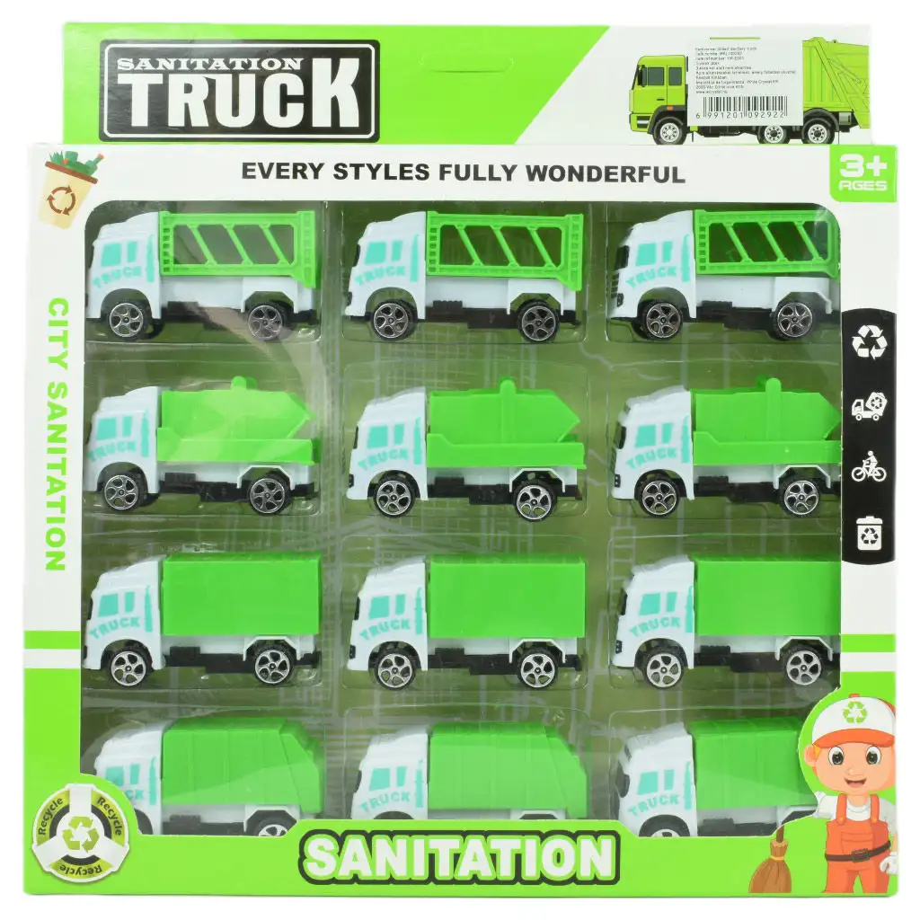 Sanitární nákladní auto: sada 12 kusů odpadkových nákladních aut 1/64Sanitární nákladní auto: sada 12 kusů odpadkových nákladních aut 1/64