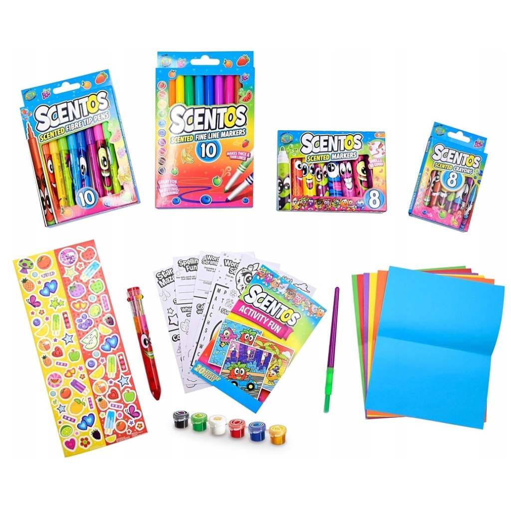 Scentos Mega tvořivá sada je opravdu všestranný kreativní komplet, který zabaví děti na dlouhé hodiny. Speciálností sady je, že pomůcky nejsou jen barevné, ale i voňavé, takže zážitek z tvoření je ještě vzrušující. Díky různým fixám, voskovkám, barvám a doplňkům si děti mohou volně rozvíjet fantazii a zároveň hravě zdokonalovat jemnou motoriku a kreativitu.