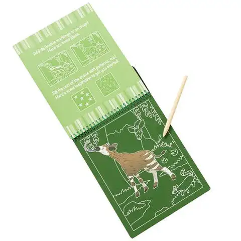 Výroba rytin není mezi nejjednodušeji realizovatelnými kreativními hrami doma, protože je to vážný úkol nanést na obrázky povrch, který lze později odškrábat. Tento skvělý sešit se spirálovou vazbou na téma safari a zážitkem z rytí určitě okouzlí děti. Díky dřevěné tužce, která je součástí sešitu, mohou děti snadno odstranit černou krycí vrstvu, a tak se před jejich očima mohou objevit celkem 12 různých safari scén.
