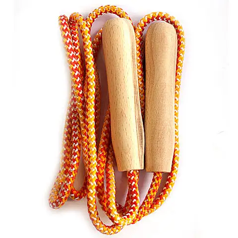 Chyťte dřevěnou rukojeť a můžete začít skákat! Oranžovou šňůru můžete vždy znovu a znovu přeskočit, otočením nad hlavou, do které můžete zapojit i své přátele. Klasická hra je velkým oblíbencem dětí, protože je jednoduchá a můžete v ní i soutěžit. Kdo dokáže skočit vícekrát bez chyby s provazem? Pokud hodně cvičíte, můžete být nejšikovnější a dokonce předvádět triky.