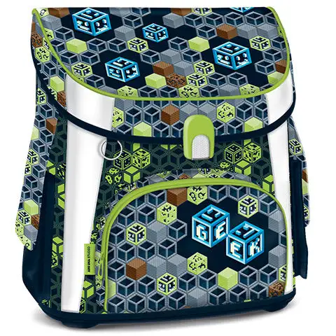 Tento batoh bude určitě oblíbený mezi geeky dětmi, protože jeho barvy a vzory připomínají počítačové herní prostředí, zároveň je ale velmi pohodlně navržen. Díky polstrované bederní části a na třech místech nastavitelným měkkým ramenním popruhům dokonale sedí na dětskou páteř. Váží velmi málo, pouze 1,1 kg, takže děti nenosí navíc velkou váhu k učebnicím. Díky materiálu odpuzujícímu vodu a pevné plastové spodní části je jeho čištění velmi jednoduché, dítě ho může kdekoliv ve škole položit. Bezpečnostní magnetická spona Fidlock je snadno použitelná, děti se nemusí bát, že by ji mohly zapnout špatně.