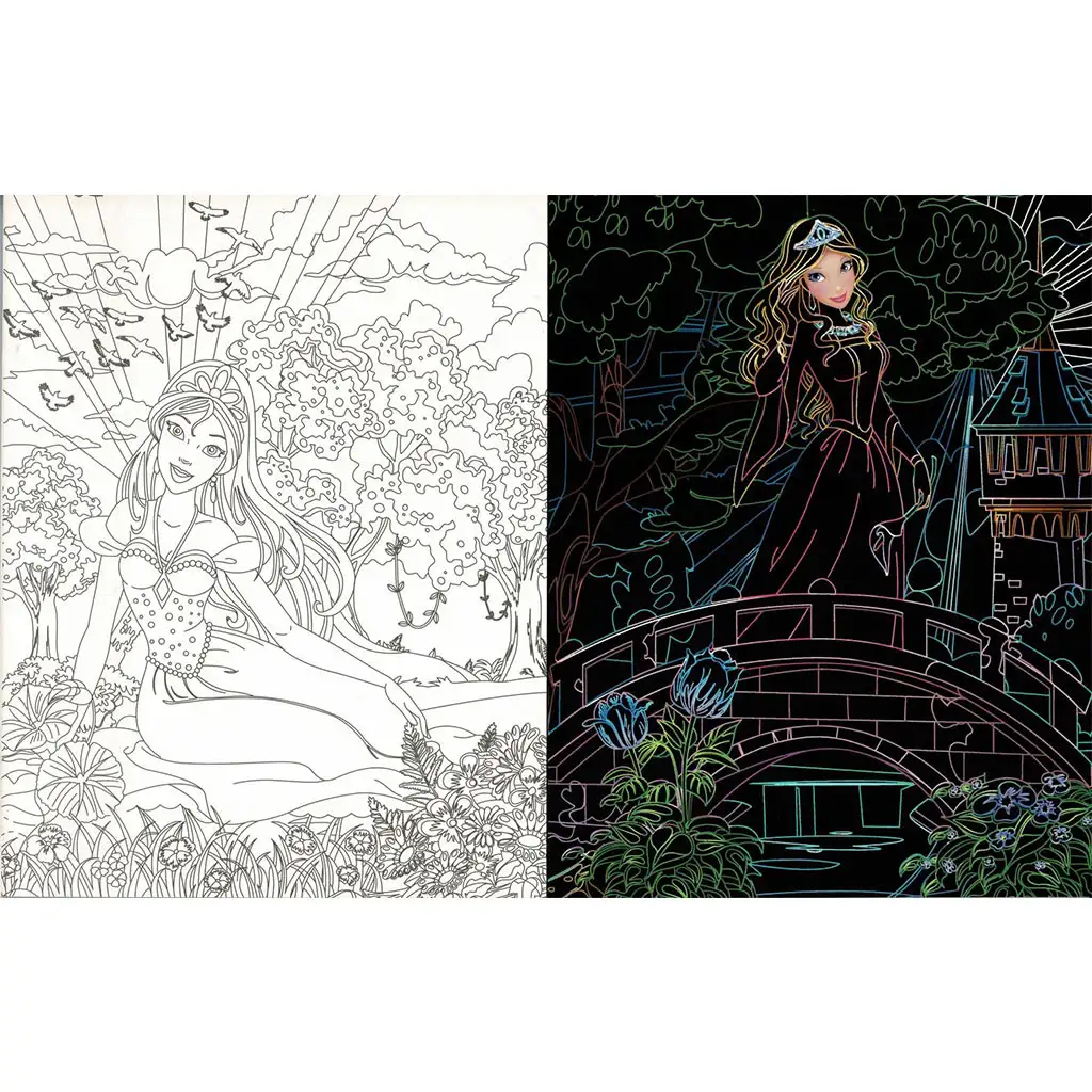 Skrývající se princezny - Omalovánky s vyškrabávacími a vybarvovacími stránkamiSkrývající se princezny - Omalovánky s vyškrabávacími a vybarvovacími stránkami
