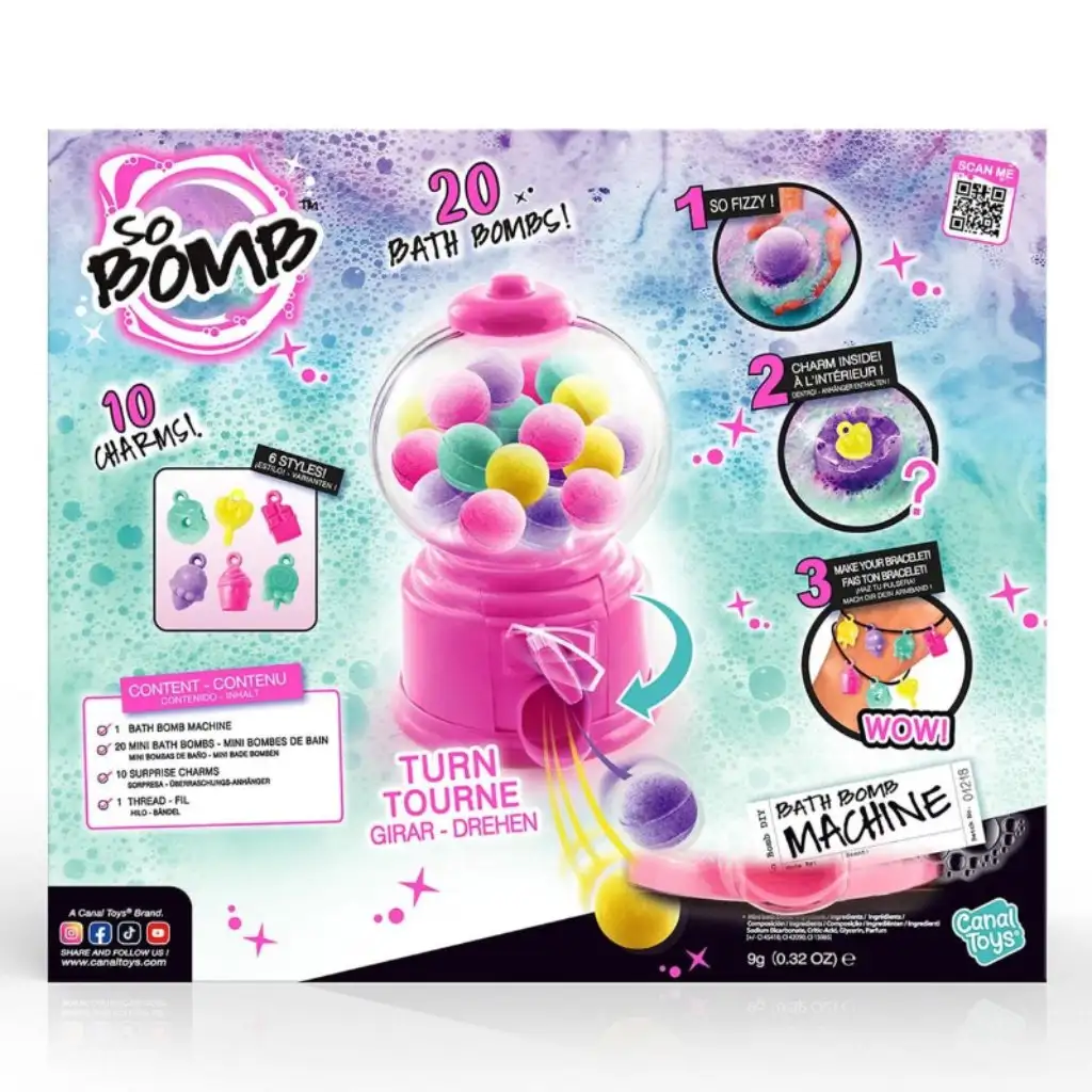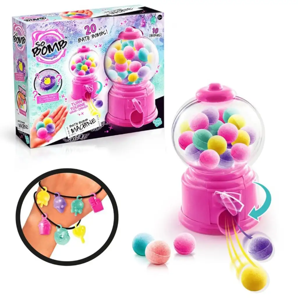 So Bomb koupelové bomby v dávkovači jsou fantastickou volbou, pokud chcete proměnit koupel v jedinečný zážitek! Barevné, šumivé a voňavé koupelové bomby vytvářejí skutečnou wellness atmosféru, kterou si děti určitě zamilují. Sada obsahuje 20 koupelových bomb, z nichž 10 ukrývá překvapení v podobě přívěsků. Tyto kouzelné malé ozdoby mají podobu oblíbených sladkostí, jako je zmrzlina, kobliha, lízátko nebo čokoláda, a lze je navléknout na řetízek nebo náramek. Vzrušující dávkovač koulí lze snadno znovu naplnit, takže zábava může kdykoli pokračovat! Sada So Bomb koupelových bomb není jen zábavná, ale také kreativní a relaxační činností a může být ideálním dárkem od 6 let.