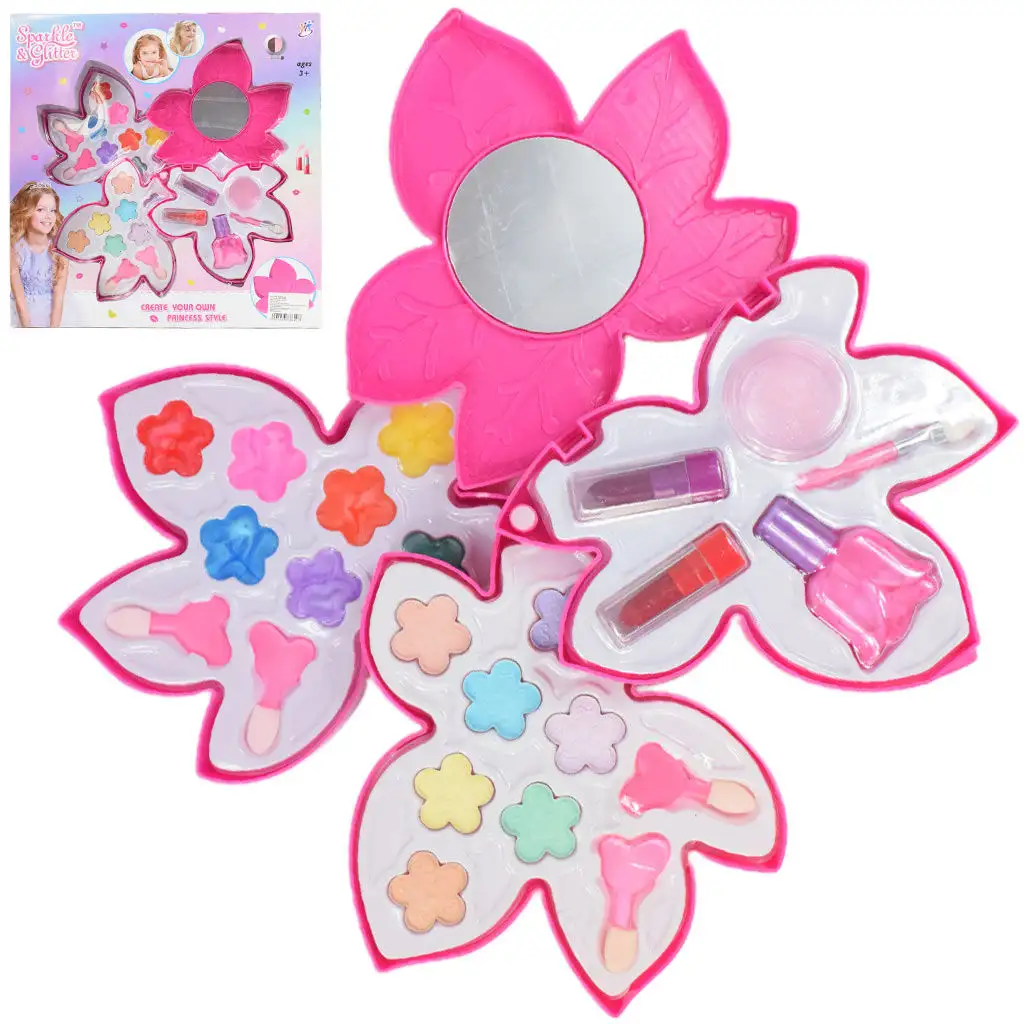 Sparkle & Glitter: Třípatrová kosmetická sada ve tvaru listu s zrcátkemSparkle & Glitter: Třípatrová kosmetická sada ve tvaru listu s zrcátkem
