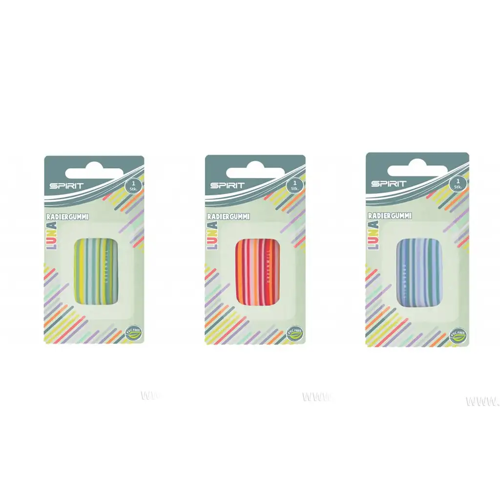 Pokud hledáte veselou, jedinečnou a praktickou gumu do školního penálu, pak je guma Spirit Luna s pruhovaným designem perfektní volbou. Tato ergonomicky tvarovaná guma se osvědčí nejen jako nástroj, ale i jako stylový doplněk na dětském psacím stole nebo v batohu. Díky barevnému a hravému vzhledu zaručeně zpříjemní učení, zatímco přesně a efektivně odstraňuje stopy tužky z papíru. Guma je vyrobena z měkkého, ale odolného materiálu, takže se snadno nedrolí a nezanechává skvrny na papíře. Je dostupná ve třech barevných variantách, takže si každý najde svou oblíbenou.