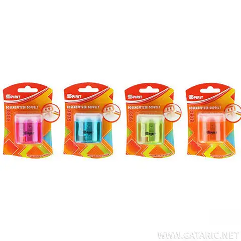 Spirit: Bobo 2-dírkový plastový ořezávátko v různých barvách, balení 1 kus.Spirit: Bobo 2-dírkový plastový ořezávátko v různých barvách, balení 1 kus.