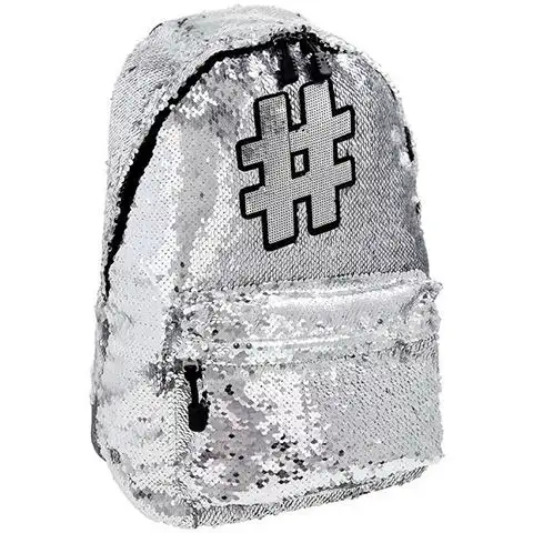 Spirit: Hashtag Stříbrný třpytivý školní batoh, batoh ve stříbrné barvě 41x32x21cmSpirit: Hashtag Stříbrný třpytivý školní batoh, batoh ve stříbrné barvě 41x32x21cm