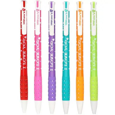 Tato praktická kuličková tužka přichází v vzrušujících barvách do penálu malých dětí, protože tělo tužky může být v šesti různých barvách. Inkoust v kuličkové tužce je v každé modrý a vydrží až 1000 metrů psaní. Na barevném vnějšku kuličkové tužky s přepínačem je nápis "I Love You" a dívky mohou také vidět srdíčkový vzor. Tato skvělá tužka bude praktickým kusem v penálu, kterým mohou i nejmenší pohodlně psát díky měkkému držadlu.