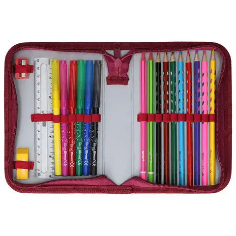 Malým dívkám se tento penál určitě zalíbí, nejenže se může pochlubit vynikající kvalitou polyesterového materiálu, ale také hmatatelně trojrozměrným vzorem. Díky skládací konstrukci se pohodlně vejde do tašky, zatímco všechny potřebné psací potřeby a doplňky se do něj pohodlně vejdou. Penál je plně vybaven, takže obsahuje barevné tužky, fixy, gumu, ořezávátko, ale i rozvrh hodin a pravítko.
