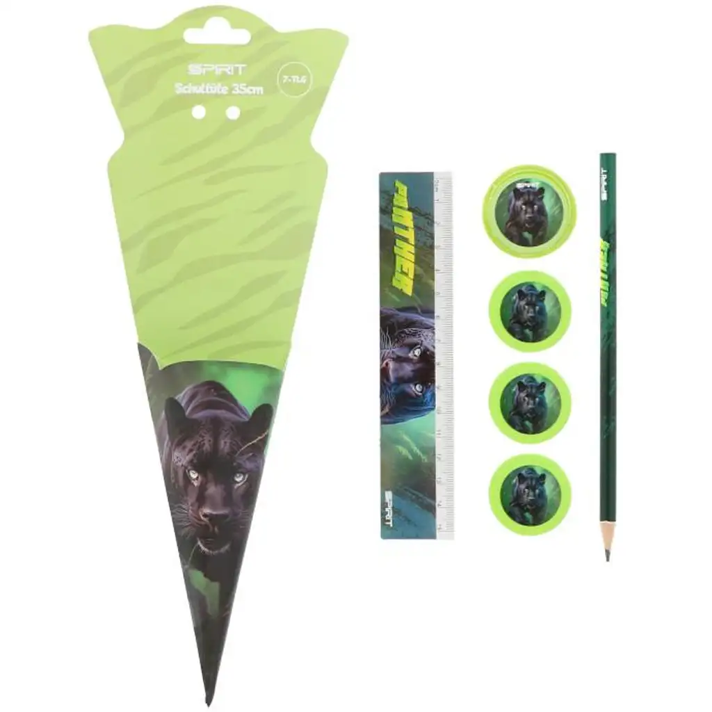Překvapte své malé školáky stylovým a energickým začátkem školního roku s pomocí sady psacích potřeb Spirit: Panther s motivem pantera! Tento atraktivní balíček ve tvaru školního kužele je nejen praktický, ale díky svému výrazně chlapeckému a silnému vzhledu okamžitě upoutá pozornost dětí. Dominují černé a šedé barvy a design s panterem dodává sadě opravdu cool vzhled.