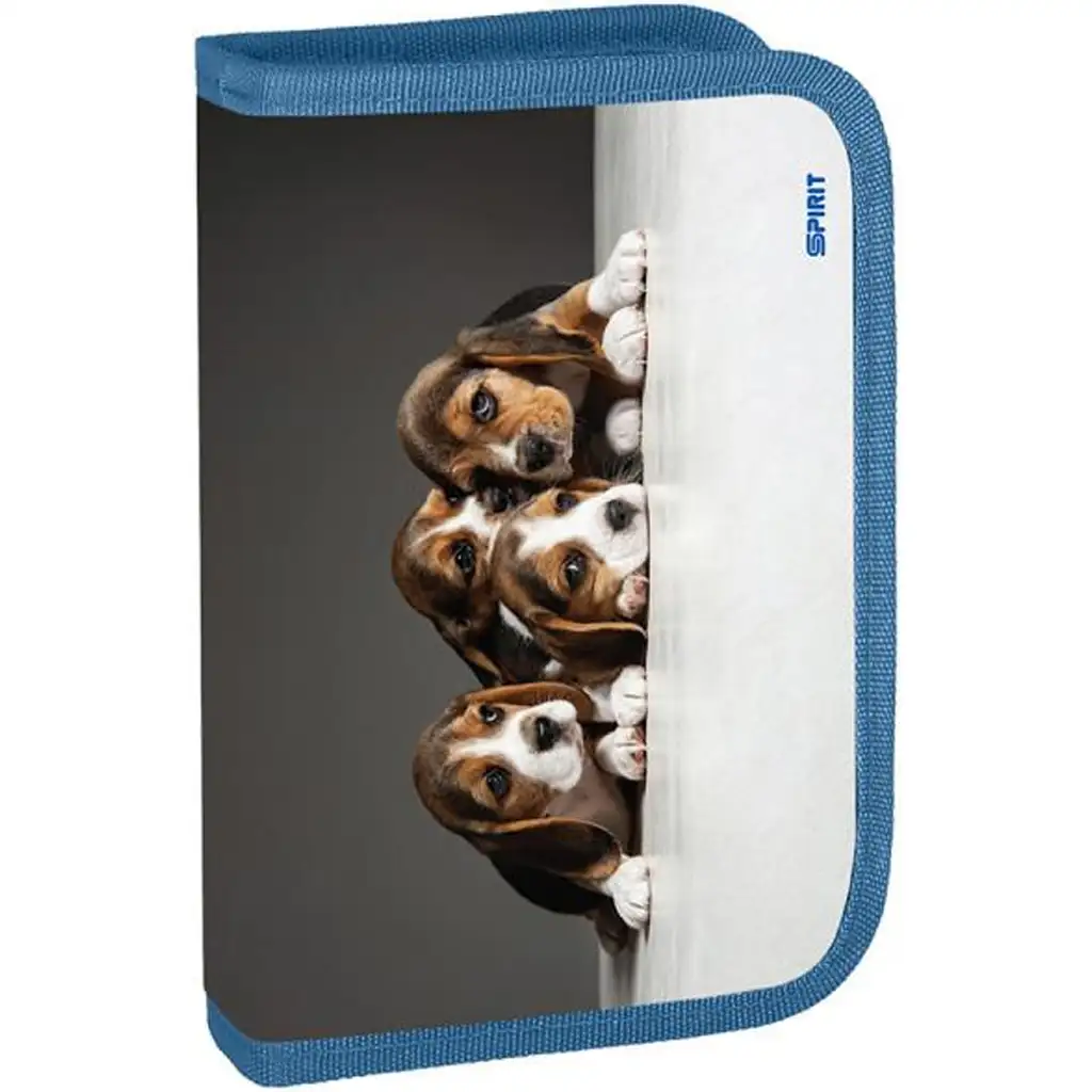 Toto pouzdro na psací potřeby Spirit je skutečně srdceryvnou volbou pro všechny děti, které milují zvířata! Na obálce zvědavě nakukují čtyři roztomilá štěňata bígla přes stůl – pohled je tak roztomilý, že vám zaručeně zlepší den, i před těmi nejtěžšími vyučovacími hodinami. Díky decentnímu, a přesto půvabnému designu je skvělou volbou jak pro chlapce, tak i pro dívky.