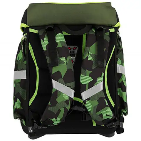 Tento školní výbavový balíček určitě okouzlí ty malé kluky, kteří jsou nadšeni z dinosaurů, protože hlavní vzor tvoří kostra statečného Triceratopse, která díky svému speciálnímu designu zdobí tašku ve 3D. Balíček obsahuje veškerou výbavu, kterou mohou děti ve škole potřebovat. Je zde pouzdro na tužky ve válcovém i klasickém designu, obsahuje také sportovní tašku a peněženku. Batoh vyniká nejen svým atraktivním vzorem, ale také pohodlným a praktickým designem. Pro pohodlí je zde dobře větraný, polstrovaný zadní díl a široké, nastavitelné ramenní popruhy. Praktický design spočívá v obrovské vnitřní kapse a předních a bočních kapsách, které usnadňují organizaci obsahu tašky. Nakonec, ale neméně důležité, taška zvyšuje bezpečnost dětí na cestě do školy a zpět díky reflexním pruhům a přezce vybavené LED osvětlením.