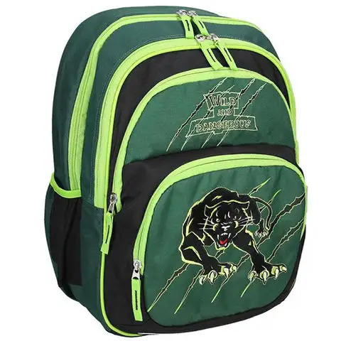 Mezi divokými zvířaty se tvé dítě může setkat s tímto černým leopardem na vynikajícím školním batohu Spirit, jehož zelená barva a běžící vzor mu mohou propůjčit stylový vzhled během školních dnů. Vedle stylu je pohodlí také velmi důležitým faktorem při výběru batohu, značka Spirit vyniká svou pozorností k ergonomickému tvarování zad, díky čemuž může tvé dítě nosit batoh s rovným držením těla každý den. Díky polstrovaným a nastavitelným ramenním popruhům je možné jej přizpůsobit vlastní velikosti, čímž zajistí co nejpohodlnější nošení. Hlavní kapsa batohu je určena především pro učebnice, v menší kapse může tvé dítě ukládat penál, peněženku a další drobné předměty, čímž předchází vzniku záhybů. Na obou stranách je držák na láhev, ve kterém se bez problémů vejde půllitrová láhev.