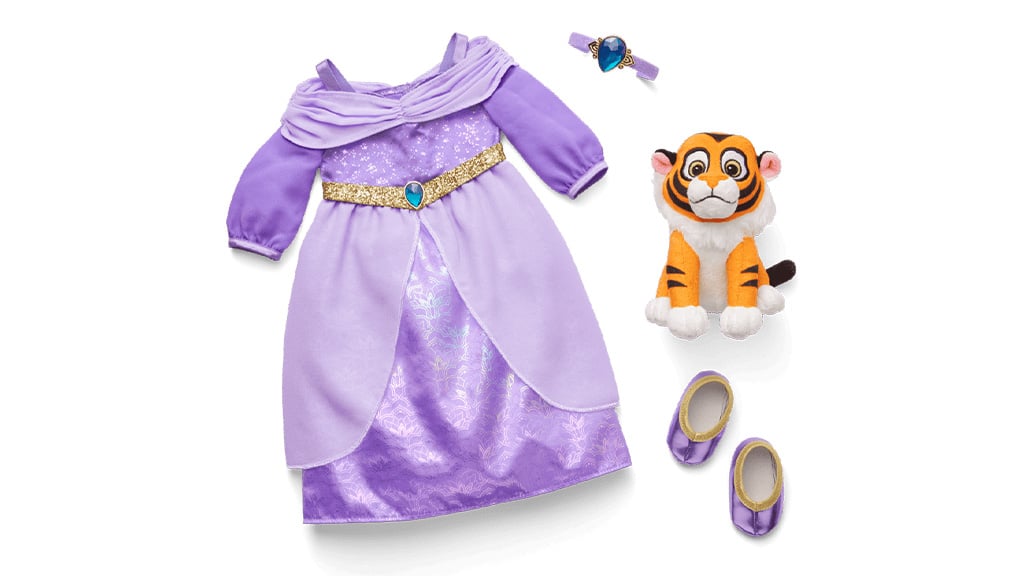 Balíček obsahuje fialové saténové šaty, ladící doplňky a měkkou plyšovou figurku Baby Rajah. Díky těmto speciálním kouskům bude hra ještě kouzelnější a děti si snadno přehrají své oblíbené scény z pohádky.