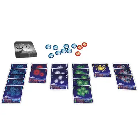 Dávejte pozor, abyste nespletli zapalovače a také velmi pečujte o střelný prach. Nic se nemůže pokazit, pokud chcete vytvořit jednu z nejkrásnějších ohňostrojů. V opakovaně oceněné karetní hře Hanabi musíte karty pokládat ve správném pořadí a barvě, takže vidíte pouze karty ostatních, ne vaše vlastní. Dejte skvělé rady svým spoluhráčům, nebo se spolehněte na své instinkty a štěstí! Nezapomeňte, hrajete si s ohněm! Na vás záleží, zda vás publikum vypíská, nebo si na vaše nádherné světla budou pamatovat i za sto let! Zapalte rakety, ať začne slavnostní ruch! Vyzkoušejte tuto unikátní kooperativní hru, kde musíte věřit svým spoluhráčům! Hra získala v roce 2013 cenu Hra roku.