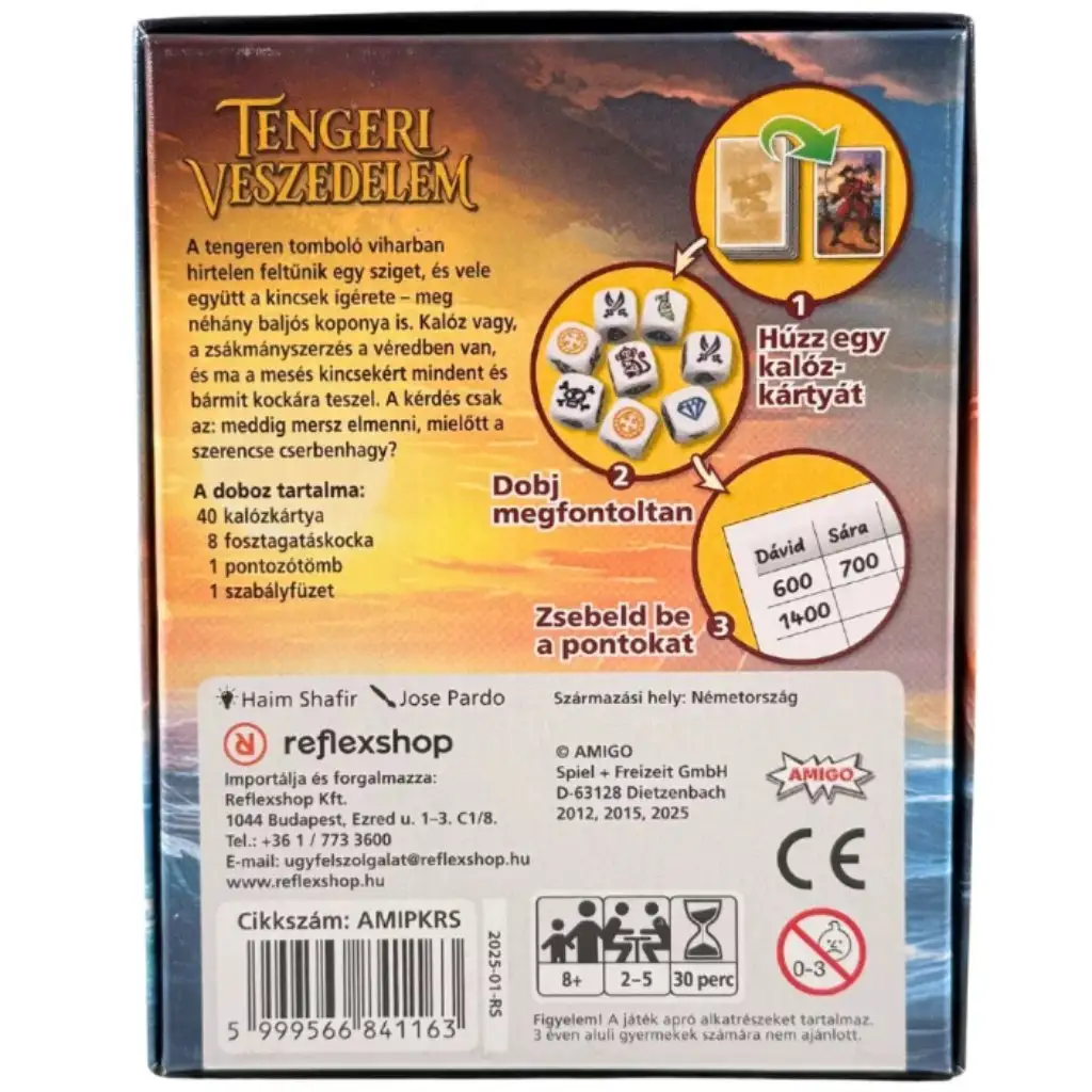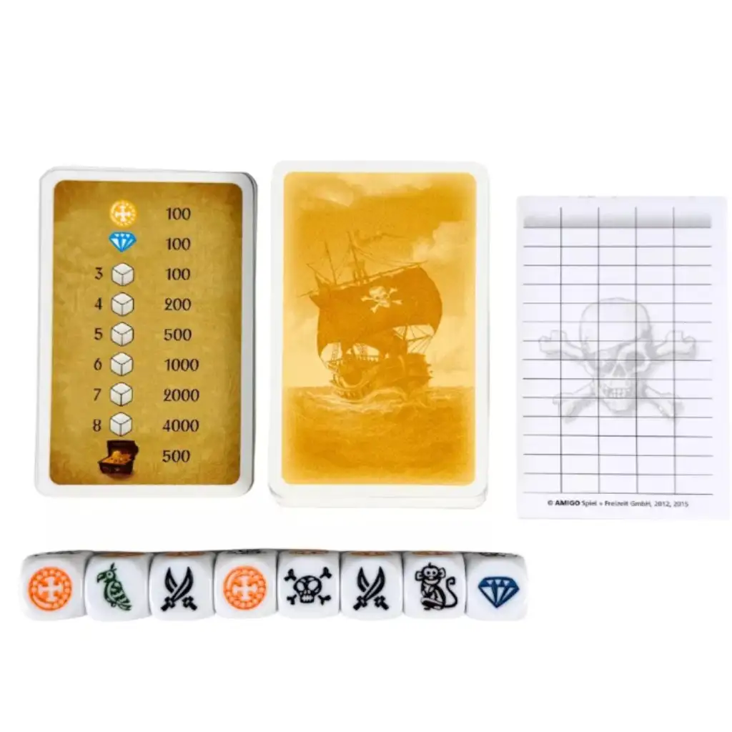 Pirátské karty přinášejí překvapivé zvraty – ať už jde o útok zombíků, ztroskotání nebo nečekaný mír – takže každé kolo nabízí jiné strategické výzvy. Cílem je nasbírat 8000 bodů, ale jedním geniálním hodem můžeš okamžitě zvítězit! Díky jednoduchým pravidlům a svižnému tempu je ideální na rodinná nebo přátelská setkání, kde je zaručená zábava i napínavá soutěž.