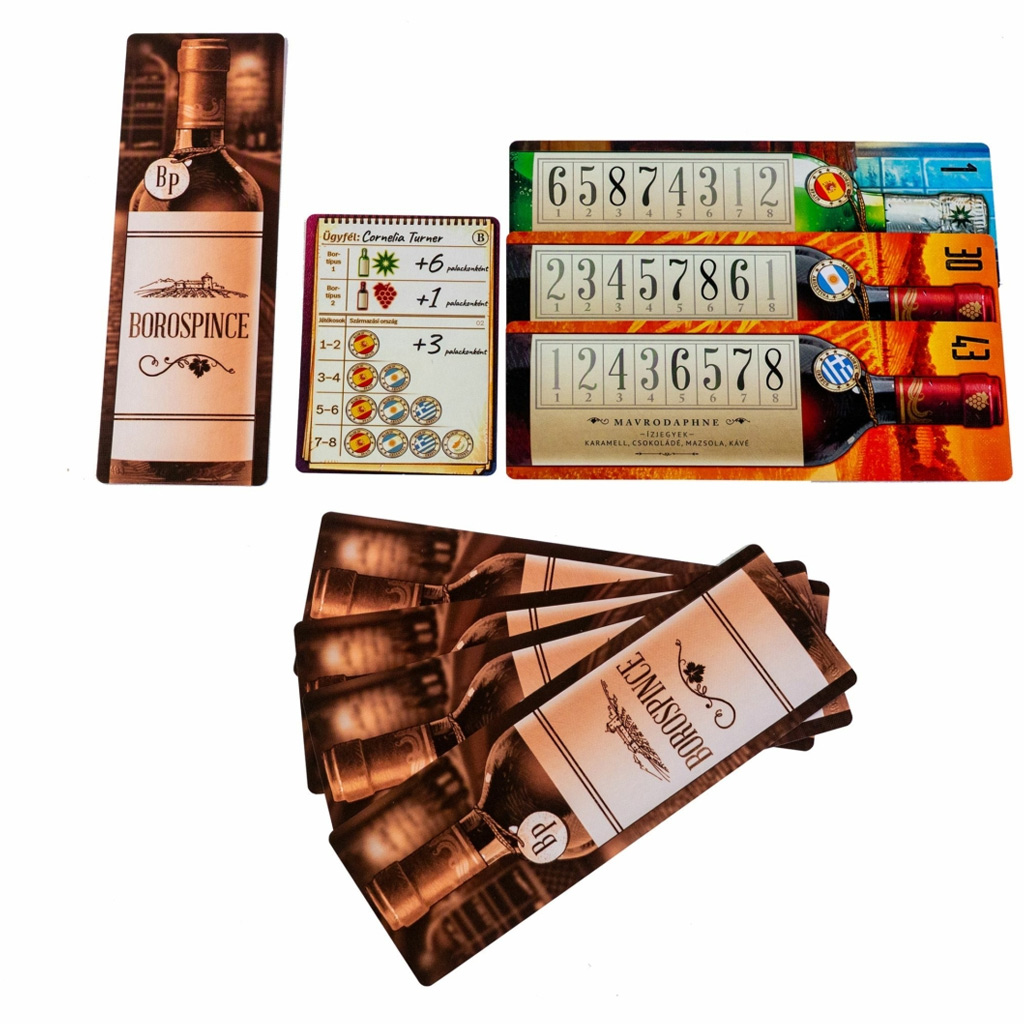 Společenská hra Borospince je strategická karetní hra s výjimečnou atmosférou, ve které můžete společně se svým dítětem vybudovat vlastní vinný sklep – ale záleží na tom, v jakém pořadí láhve umístíte na svá místa! Krásné ilustrace a jedinečné téma vás okamžitě vtáhnou, zatímco hra neustále klade před hráče rozhodnutí. Musíte současně sledovat aukce, tahy soupeřů a požadavky zákazníků, takže každá partie zůstává napínavá a různorodá.