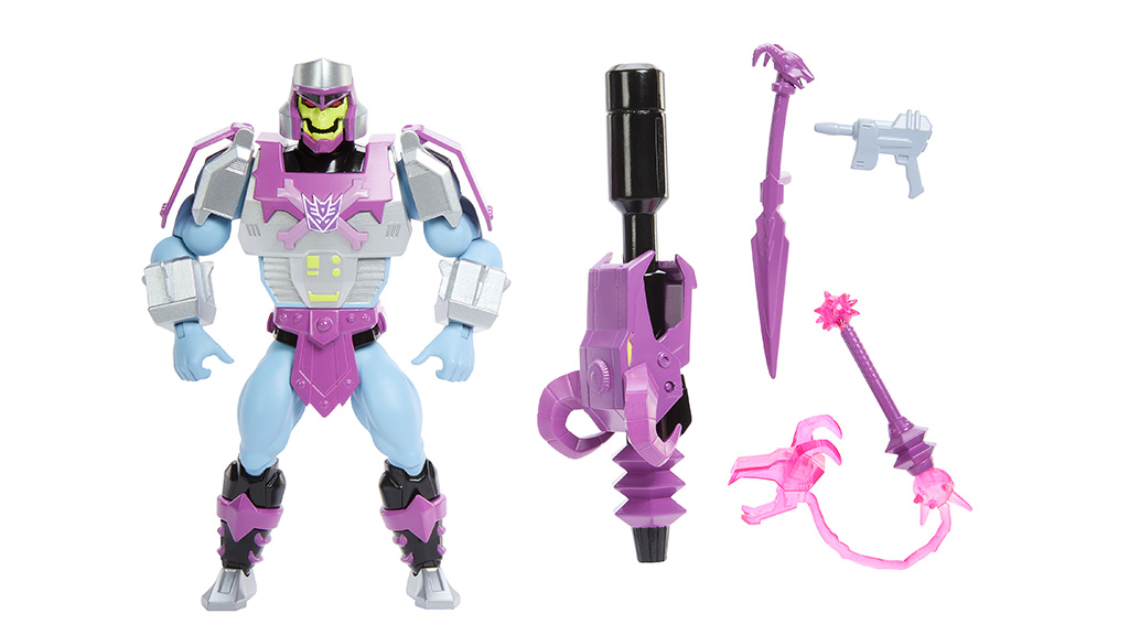 Díky spolupráci Masters of the Universe a Transformers mohou rodiny znovu prožít své oblíbené dětské okamžiky a představit nejmenším vzrušující světy Cybertronu a Eternie. Tato výjimečná spolupráce nabízí možnost, aby rodiče a děti společně objevovali legendární hrdiny a padouchy, zatímco si spolu hrají a sbírají různé figurky. Fanoušci Masters of the Universe najdou mnoho sběratelských figurek a doplňků, zatímco příznivci Transformers si mohou vybírat z široké nabídky tematických dárkových předmětů a hraček. Tento společný zážitek nejen přináší radost ze hry, ale také posiluje rodinné vazby, zatímco děti poznávají příběhy a postavy těchto dvou ikonických vesmírů.Skeletor nosí silné brnění, které bylo inspirováno hlavním padouchem Transformers. Tato akční figurka vzdává hold oběma vesmírům propracovanými detaily, prémiovou pohyblivostí, dynamickým designem brnění a různými doplňky. Tato figurka poskytuje jedinečný zážitek nejen sběratelům, ale i fanouškům, protože spojuje to nejlepší z obou světů v jedinečném a působivém vzhledu.