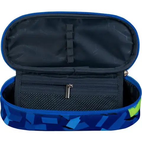 Tento vynikající kvalitní textilní penál s vodoodpudivým efektem je skvělou volbou pro vaše dítě, protože díky své odolnosti může být jeho společníkem během dlouhých školních let a bezpečně uchovávat jeho psací potřeby. Modrá základní barva penálu skvěle harmonizuje s trojrozměrným efektem kostky a dodává jeho uživateli stylový vzhled. Penál může obsahovat spoustu psacích potřeb díky své délce 23 cm, takže se do něj vejde i obal na tužky, pravítko. Po otevření zipu najdete ve velkém vnitřním úložném prostoru oddělovací klapku s pásky na gumu, která může uchovávat nejčastěji používané psací potřeby.
