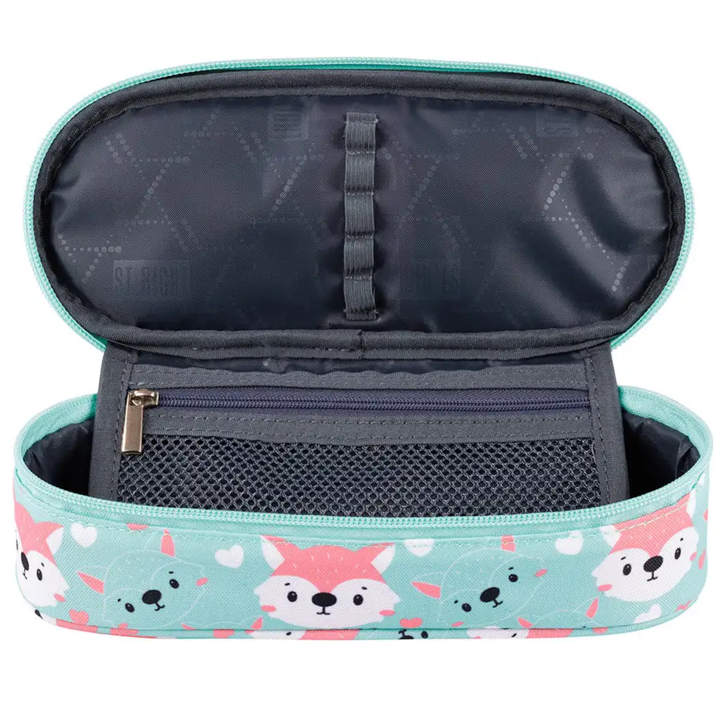 Oválný penál St.Right Lovely Fox bude oblíbeným kouskem každého malého školáka! Tento roztomilý penál s motivem lišky září tyrkysovou barvou, která zajišťuje veselý a hravý vzhled. Vzorovaný design zaručeně vykouzlí úsměv na tváři každého a snadno odliší penál ve škole.