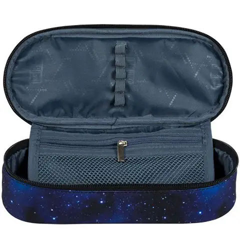 Tento penál připomíná vzrušující atmosféru kosmického výzkumu a astronomie svým hvězdným základním odstínem a nášivkami na vrchu. Můžeš si být jistý, že ho každý kluk, který se zajímá o kosmický výzkum nebo astronomii, bude rád používat. Jeho oválný tvar je velmi praktický, protože se do něj vejde spousta psacích potřeb. Nejpoužívanější pera nebo tužky můžeš připevnit na víko, takže je budeš mít vždy po ruce, když je budeš potřebovat. V síťované vnitřní kapse se mohou vejít i menší doplňky, takže je nebudeš muset vyhledávat na dně penálu.