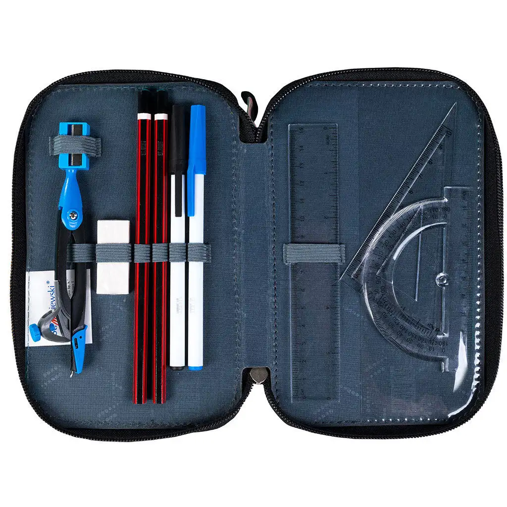 Penál má tři samostatné komory, každá uzavíratelná zipem, takže všechny školní potřeby můžete bezpečně a přehledně uložit. Ergonomické úchyty zipů jsou snadno ovladatelné i pro nejmenší ruce. V komorách se nachází mnoho upevňovacích a oddělovacích prvků, které pomáhají udržovat tužky, pera a další potřeby přehledně uspořádané, takže vždy snadno najdete, co potřebujete.