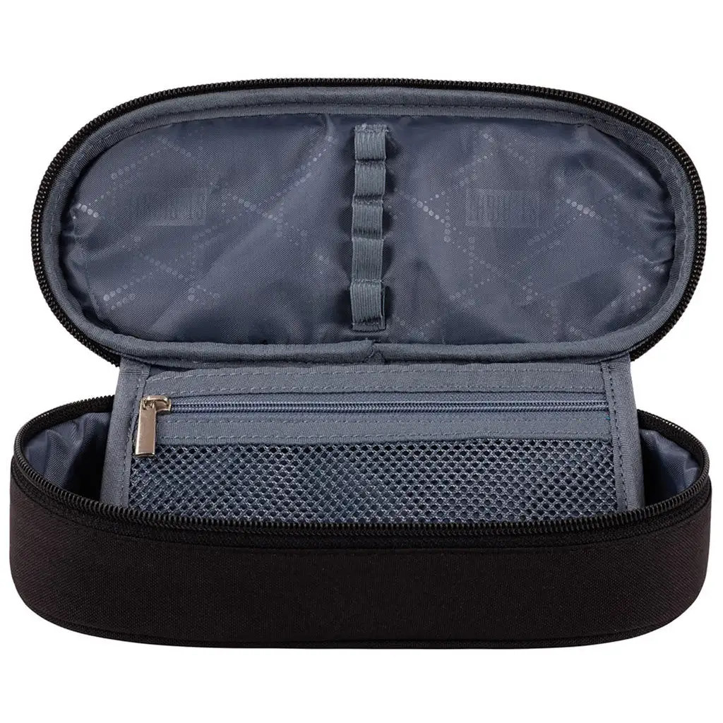 Penál má prostornou hlavní přihrádku, která poskytuje dostatek místa pro všechny potřebné psací potřeby. Uvnitř se nachází kapsa na zip, ve které lze bezpečně uložit menší předměty, jako jsou gumy, ořezávátka a papíry. Kromě toho je penál vybaven upevňovacími pásky, které pomáhají udržovat pořádek v tužkách a perech, takže je vždy snadno najdete.