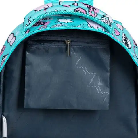 Tento živý pastelově modrý batoh s mnoha drobnými barevnými vzory určitě získá oblibu malých dívek. Navíc se stane oblíbeným nejen díky svému atraktivnímu vzoru, ale také díky pohodlné a praktické konstrukci. Díky polstrované zadní části a nastavitelným a širokým ramenním popruhům je batoh pohodlný pro děti. Školní batoh vyrobený z kvalitního, voděodolného materiálu je praktický i pro ukládání, protože má několik velkých přihrádek a zipové kapsy pro knihy a sešity, stejně jako boční kapsu na gumičku pro láhev. Nakonec, ale ne méně důležité, je velmi užitečná i zpevněná spodní část a reflexní vzory pro bezpečnost.