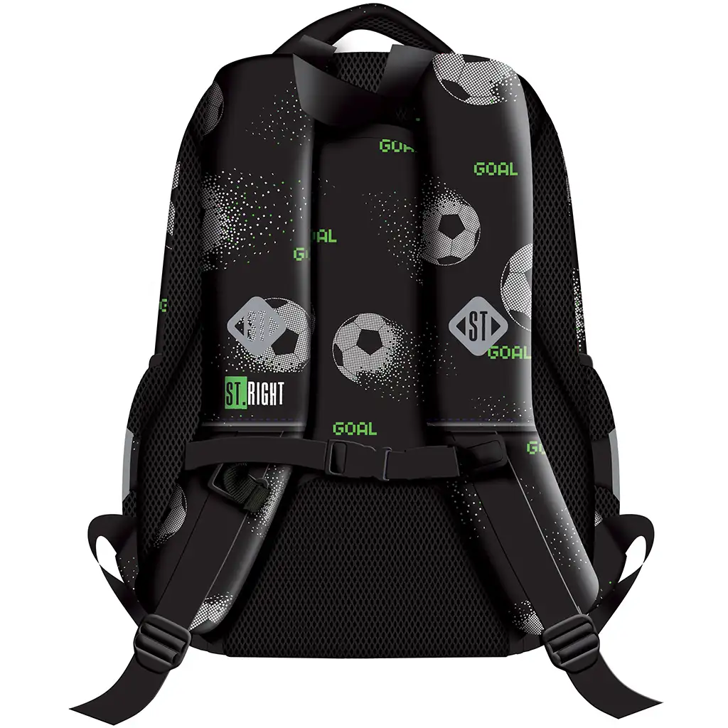 Pokud je vaše dítě fanouškem fotbalu a má rádo moderní, stylový design, pak si školní batoh St.Right Pixel Football BP26 určitě zamiluje! Tento stylový batoh s černým základem, vzorem míčů v pixelovém efektu a výraznými zelenými nápisy "GOAL" dodává nositeli opravdu jedinečný vzhled. Batoh není jen nápaditý, ale také praktický, takže bude perfektním společníkem během školních dní, tréninků i výletů.