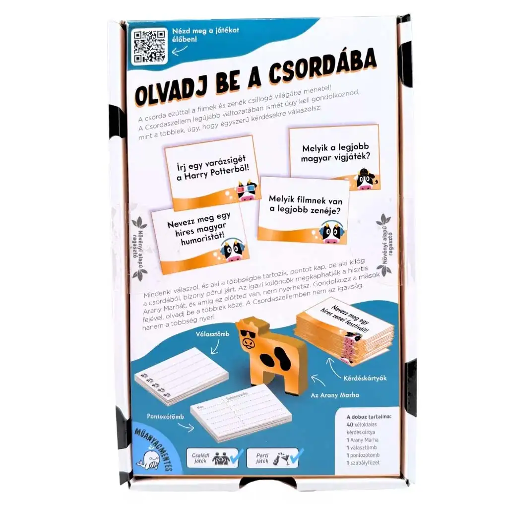 Csordaszellem – Múúzik a Mozik je hra, kterou se naučíte během chvilky, hraje se v rychlých kolech a každé její utkání dokáže překvapit. Je ideální volbou na setkání s přáteli, rodinné večery nebo jakoukoliv příležitost, kdy chcete zažít hlasitý smích a řadu „to snad není možné“ momentů. Tato hra dokazuje, že někdy je nejlepší strategií myslet přesně jako všichni ostatní.