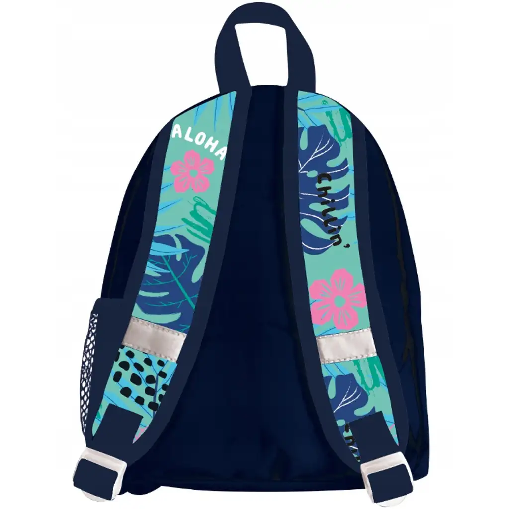 Batoh má dvě přihrádky na zip, takže různé věci lze snadno uspořádat. Pohodlné, polstrované ramenní popruhy jsou nastavitelné, takže se dokonale přizpůsobí velikosti dítěte. Reflexní pruhy umístěné na popruzích zajišťují bezpečnost i za zhoršených světelných podmínek. Zadní strana i popruhy jsou ozdobeny veselým tropickým vzorem, takže je batůžek z každého úhlu nápaditý a hravý.