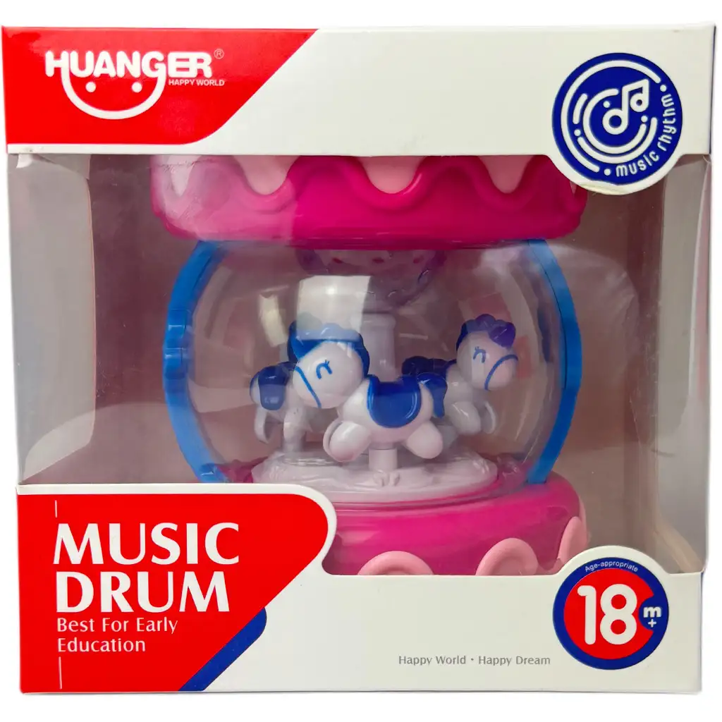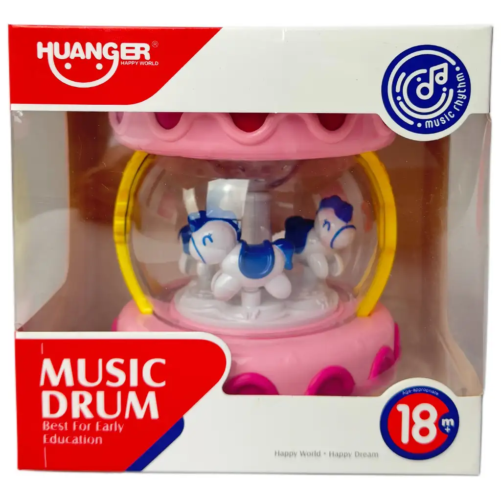 Pořiďte svému dítěti růžový kolotoč, který disponuje světelnými a zvukovými efekty a zaručuje skvělý zážitek ze hry již od půldruhého roku věku. Hračka neobsahuje žádné malé díly a je vyrobena ze 100% nezávadného plastu. Kolotoč je umístěn v průhledném plastovém krytu, uvnitř kterého se dokola otáčejí poníci různých barev. Kolotoč je vybaven světelnými a zvukovými efekty a pomocí tlačítek na horní části lze přehrávat různé melodie pro vaše dítě; kolotoč může sloužit i jako noční světlo.