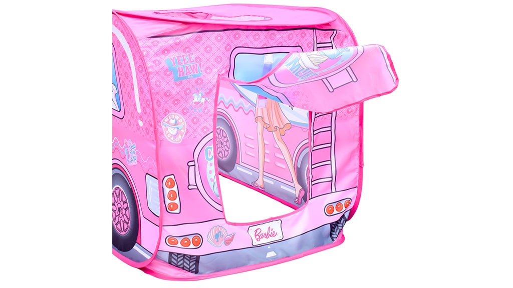 Je čas, aby se fanoušci Barbie vydali na imaginární cesty s nejnovější hračkou od Sunny Days Entertainment. Barbie Pop-Up Cowgirl Camper je stan ve tvaru vozidla, na kterém jsou vyobrazeny Barbie, její přátelé, zvířátka a westernové motivy. Tato hračka s tématem westernového karavanu má dva otvory na střeše a snadno přístupné dveře vzadu, takže děti mohou jednoduše vcházet a vycházet, zatímco objevují nová dobrodružství. Tento stan nejen podporuje kreativní hru, ale také dává dětem možnost vytvořit si vlastní malý svět, kde si mohou volně hrát, snít a společně s přáteli zažívat vzrušení světa Barbie.
