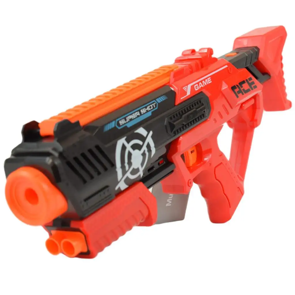 Super Shoot: Manuální pěnová střelná zbraň s náboji a lahví s cíli 46 cm