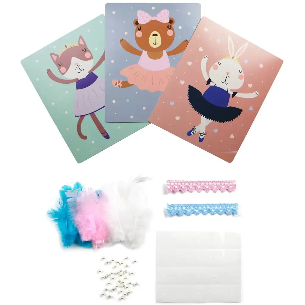 Sada obsahuje všechny potřebné materiály, takže od per přes korálky a krajkové stuhy až po lepicí tečky je vše připraveno pro zábavné tvořivé odpoledne. Úkol je jednoduchý: stačí následovat vzor nebo nechat dítěti volnou ruku a umožnit mu zdobit malé baleríny podle jeho vlastního stylu. Během kreativní činnosti se rozvíjí jemná motorika, zručnost, koncentrace a estetické cítění.