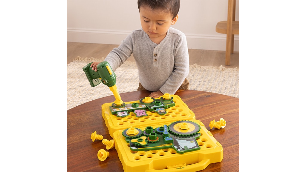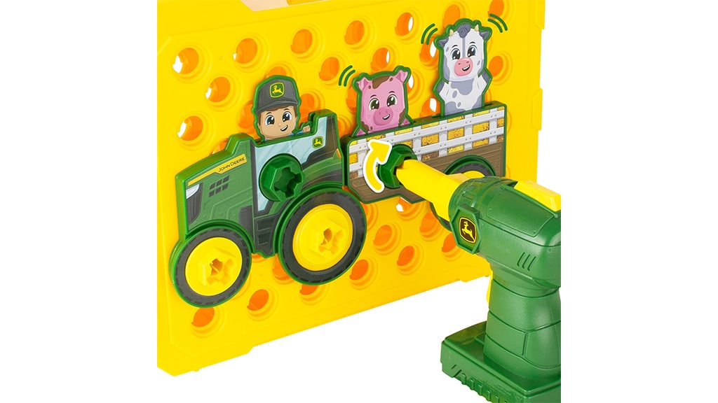 John Deere Build-A-Buddy Activity board obsahuje dvě různé farmářské scény. Tato hračka nabízí dětem vynikající příležitost kreativně objevovat venkovský život, zatímco rozvíjejí své jemné motorické dovednosti a schopnost řešit problémy. Barevné, detailní scény pomáhají rozvíjet představivost a zajišťují hodiny zábavy.U malých dětí se rozvíjejí jemné motorické dovednosti, když stisknou tlačítko vrtačky. Tato činnost není jen zábavná, ale také pomáhá rozvoji koordinace ruky a oka a přesných pohybů. Takové hračky přispívají k rozvoji zručnosti, což bude později užitečné při psaní, kreslení a dalších každodenních činnostech.